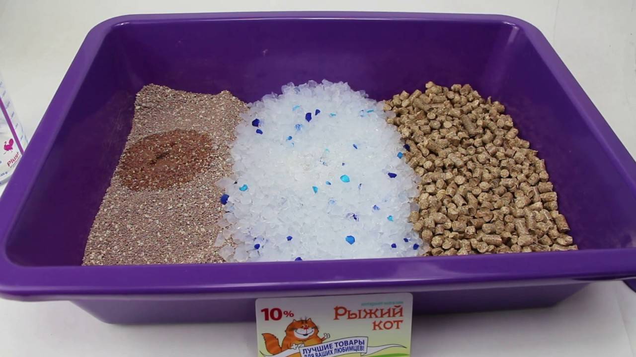 Сейчас в продаже можно найти любые виды наполнителя. Они отличаются сырьем, размером гранул, мягкостью, степенью впитывания. Наполнитель необходимо засыпать толстым слоем: 7-10 см. Виды наполнителей для кошачьих туалетов: