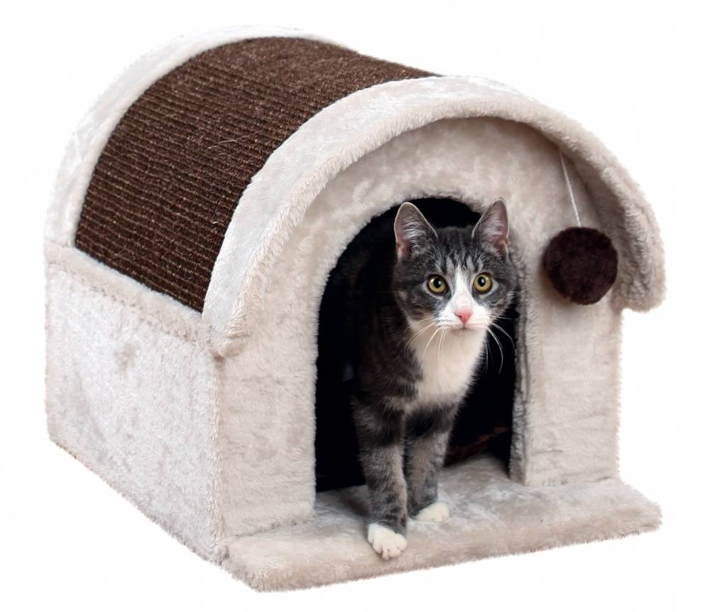 Идеальным вариантом будет приучить кошку к когтеточке в виде домика или игрового пространства. Таким образом, они будут не только решать основную проблему точения, но также занимать свое свободное время или спать.
