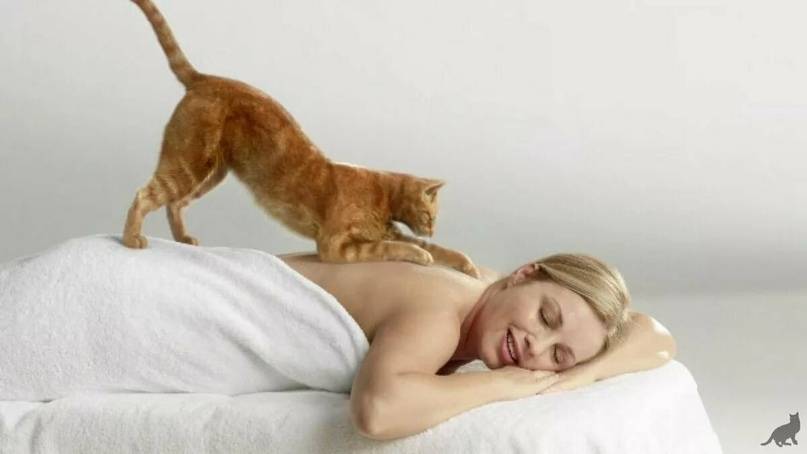 Хозяева с удовольствием подставляют уставшие за день плечи или другие участки тела своим питомцам – кошачий массаж отлично снимает усталость, успокаивает, приносит умиротворение.