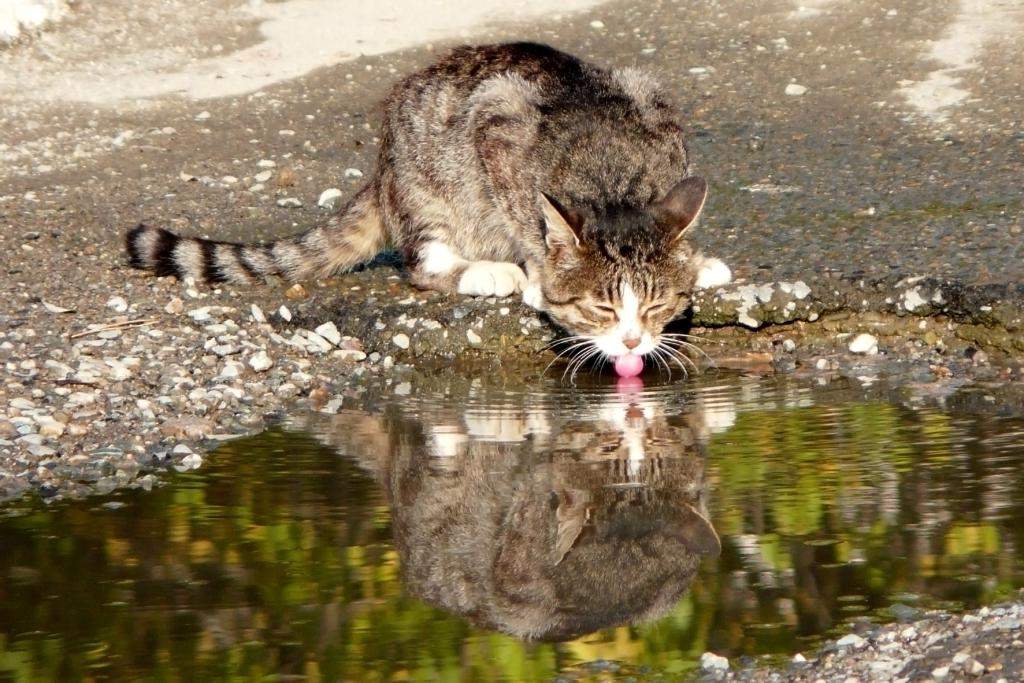 Кроме того, животные, которые «гуляют сами по себе» могут не пить воду дома, но получать ее с улицы. Нередко домашние кошки подкармливаются у соседей, там же они могут получать воду. Кошки, питающиеся дома сухим кормом, могут периодически выходить на улицу на охоту. Пойманный и съеденный голубь, воробей или мышка полностью покрывают потребность организма в жидкости.
