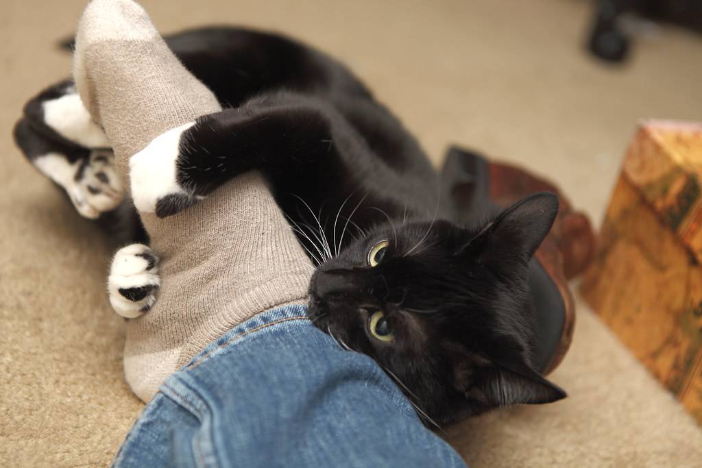 Если не реагировать на укусы кота за ноги, такое поведение становится для него нормой