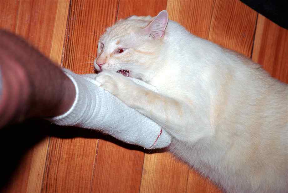 Как отучить кошку кусать ноги?