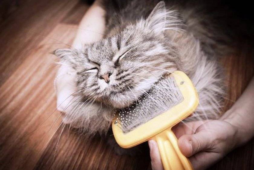 - Вычесывание. Длинная и пушистая шерсть требует особенного внимания. Таких кошек следует ежедневно вычесывать при помощи специальной расчески, чтобы избежать образования колтунов, улучшить состояние шерсти, ускорить процесс линьки.
