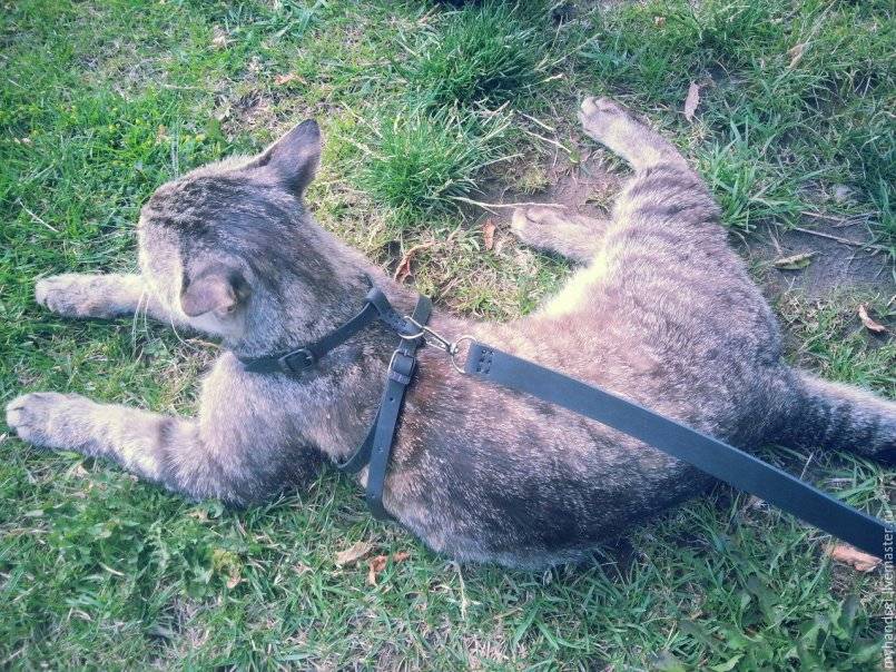 Сделать для кошки шлейку из ремней можно самостоятельно, по качеству она не будет уступать магазинной, если правильно подобрать материал, как следует прошить крепления.