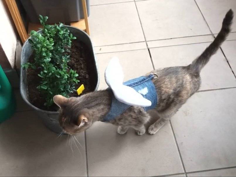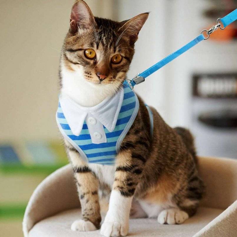 Для тех, кто любит рукодельничать и шить на швейной машинке. Выкройки шлейки-жилетки для кошки не составит труда найти в интернете. Или придумать оригинальный фасон.