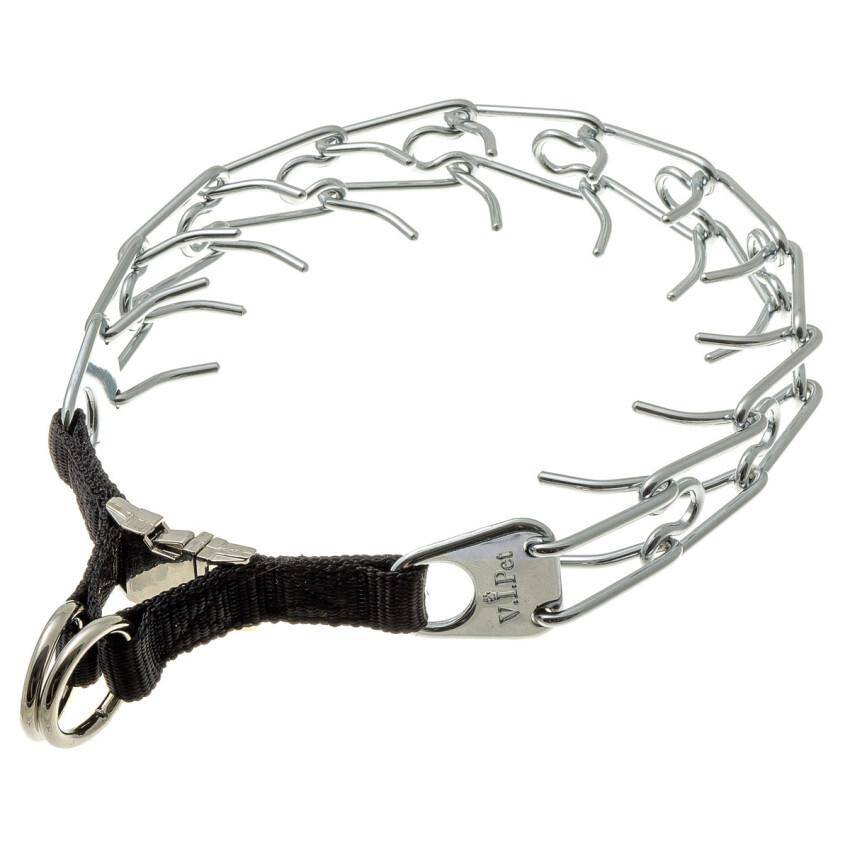 - строгий (парфорс) – ремешок из кожи и/или металла с шипами на внутренней стороне, которые доставляют дискомфорт всякий раз, когда питомец переходит в неспокойное состояние;
