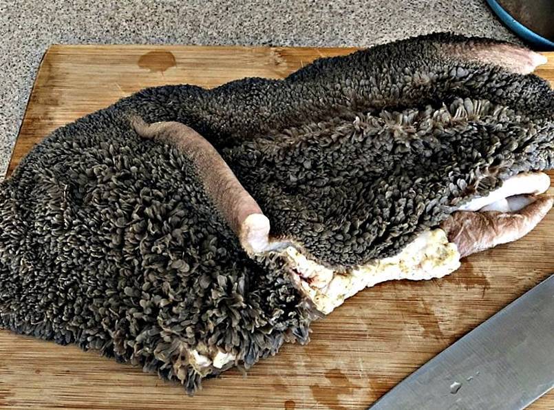 - разделывайте его в перчатках, иначе запах въедается в руки;