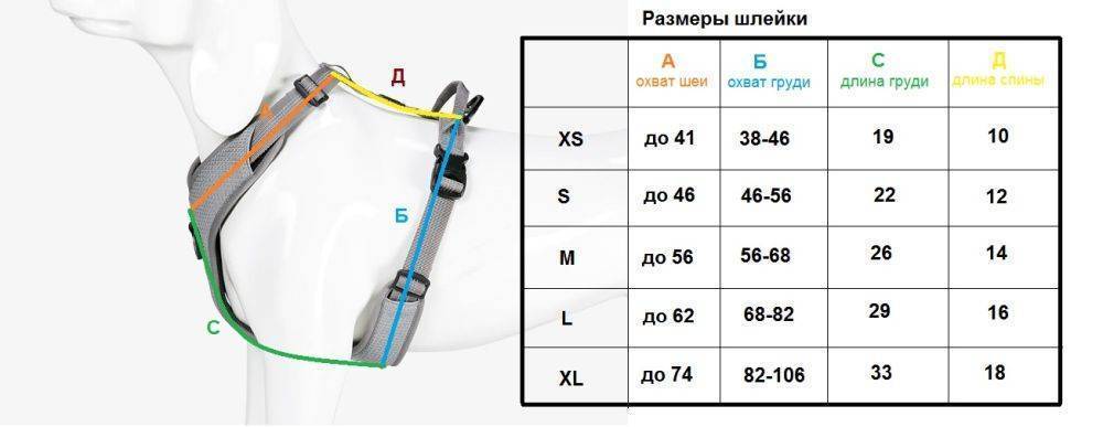 Важно! Для правильного замера шерсть животного прижимают. Небольшой люфт на шлейке регулируют ремнями