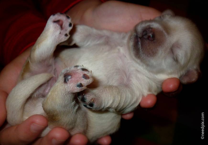 Нужно поднимать новорожденного осторожно. Новорожденные и молодые щенки очень нежные, поэтому следует держать их аккуратно