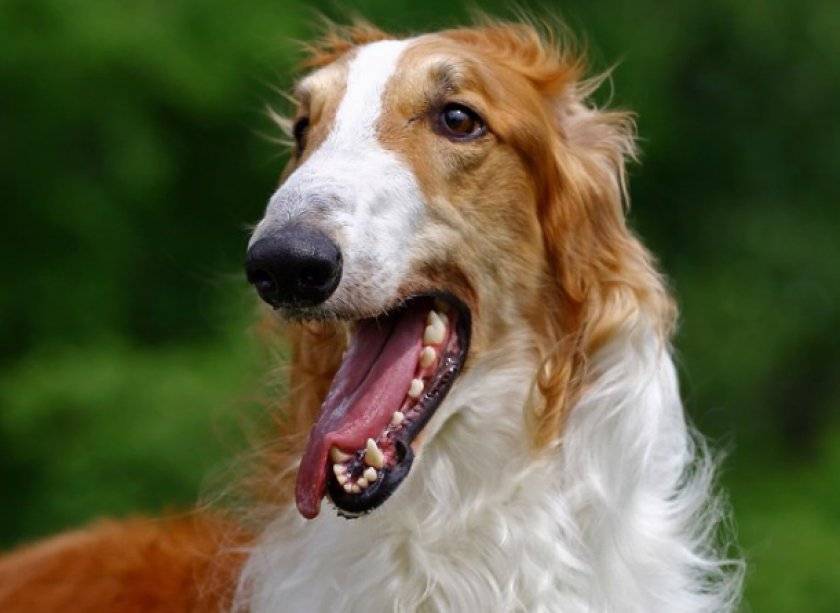 Зубы русской псовой борзой крепкие, белые. Прикус может быть прямым либо ножницеобразным.