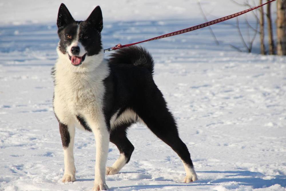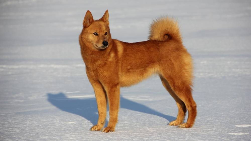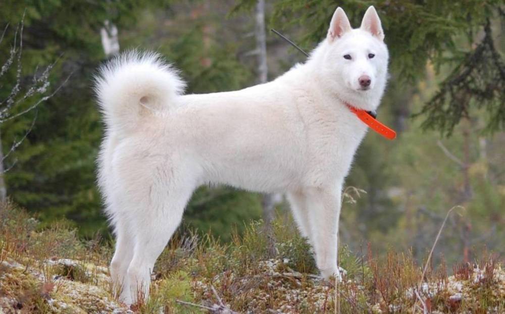 Это мини-лайка с ростом ниже среднего родом из Финляндии. Животных используют преимущественно для выслеживания пушных зверьков, водоплавающей дичи, тетеревов и глухарей, а также лосей. Относительно небольшие размеры не мешают «финкам» быть азартными охотниками, которые звонким лаем сообщают хозяину местоположение добычи.