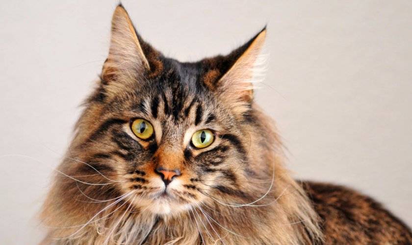 Мейн-куны появились из американского штата Мэн. Из-за сильных зимних холодов в этом штате США эти кошки имеют густую длинную шерсть и роскошный пушистый хвост. У них крепкое хорошо сложенное тело с сильными широкими лапами, у которых между подушечками растут клочки шерсти. На ушках кошек имеются небольшие симпатичные кисточки, что делает их похожими на рысь.