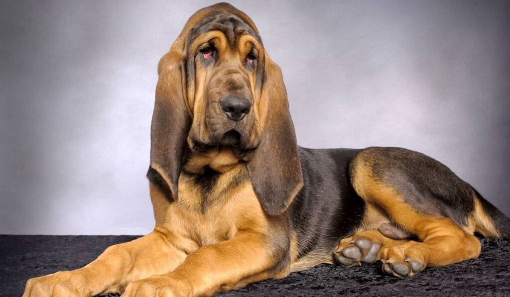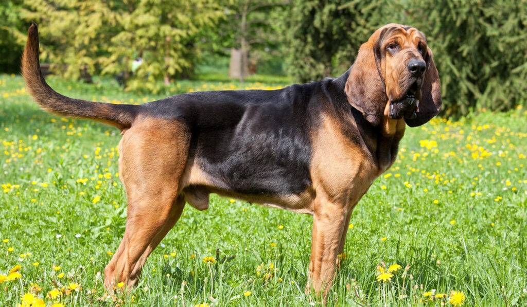 Изначально это гончая порода, которая, судя по переводу названия породы идет по “кровавому следу”. Сегодня бладхаундов в основном используют как ищеек. Но порода настолько редкая, что заслуженно вошла в наш список.