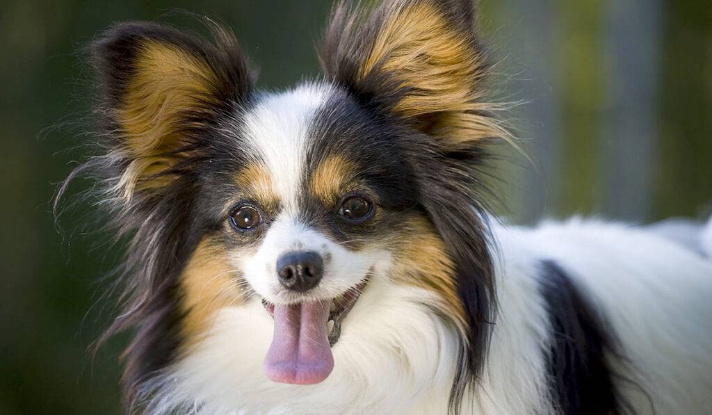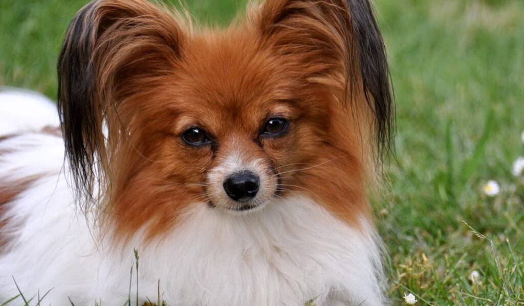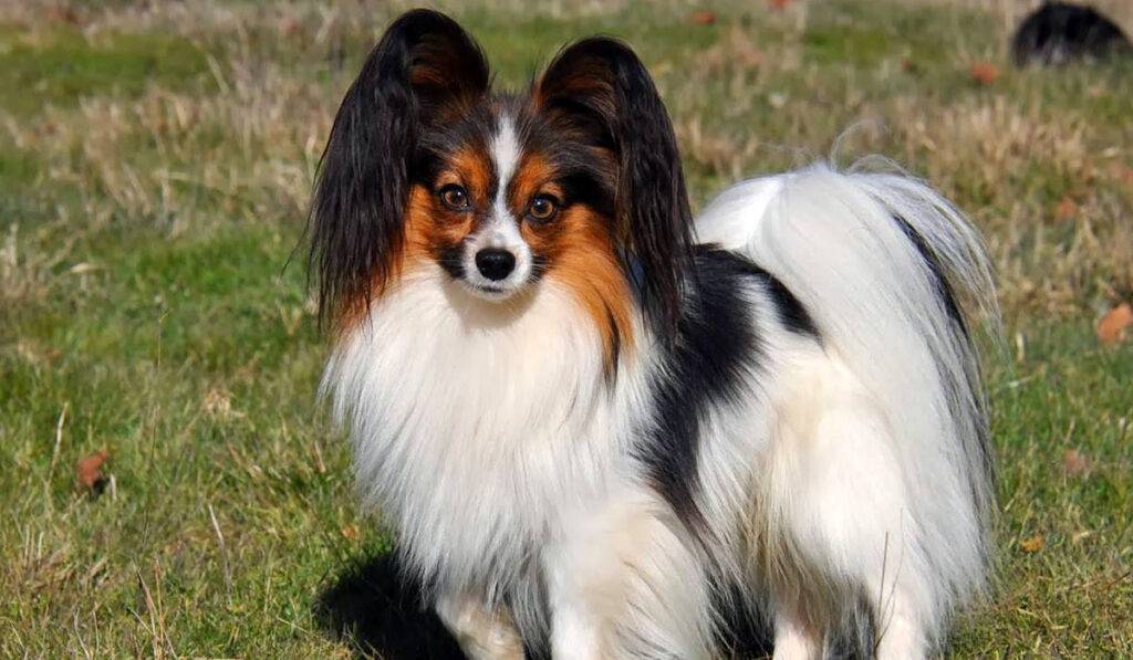 Это спаниелевая декоративная собачка, которую еще называют папильон-бабочка из-за его ушей, которые похожи на распахнутые крылья бабочки. Есть и другая разновидность — фален, ушки которого не стоят торчком, а ниспадают вниз как сложенные крылья мотылька. Однако последние не признаны кинологами.