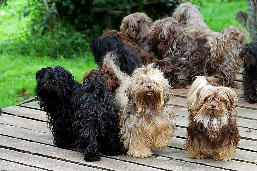 Эти собаки с короткими лапами, длинной шеей и туловищем квадратного формата. Их шерсть распадается на пробор, спадает на глаза, растет по мере взросления. Подшерсток пушистый и густой, остевой волос волнистый и шелковистый, обязательно цветной.