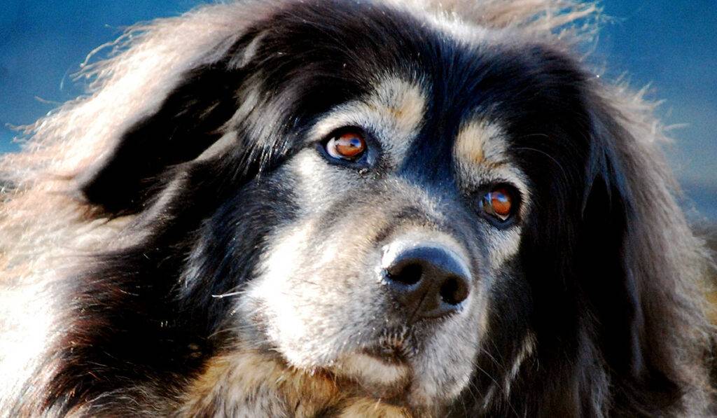 - Тибетский мастиф является обладателем длинной, густой, прямой шерсти, окрас которой может быть черным, буро-коричневым, черным с подпалинами, золотистым. На ощупь шерсть грубая и имеет два слоя – внутренний и внешний;