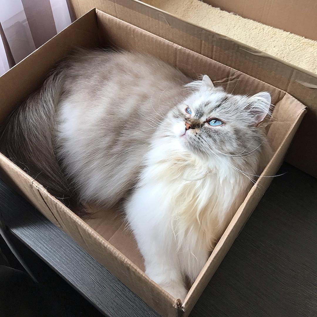 Все кошки любят коробки. Хайленд-страйт окраса колор-пойнт