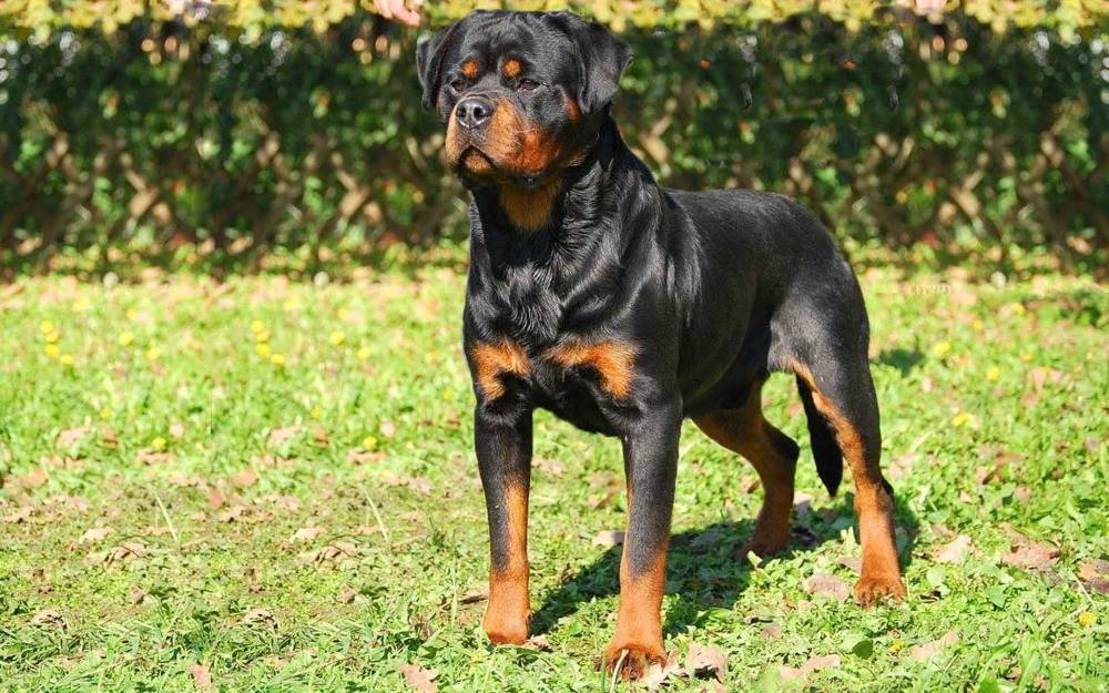 Ротвейлер – немецкая порода крупных собак, которая чаще всего используется как телохранитель или для поисков людей. Перед опасностью не отступает, предан своему хозяину. Несмотря на распространенное мнение о сложности и даже опасности характера, хорошо поддается дрессуре