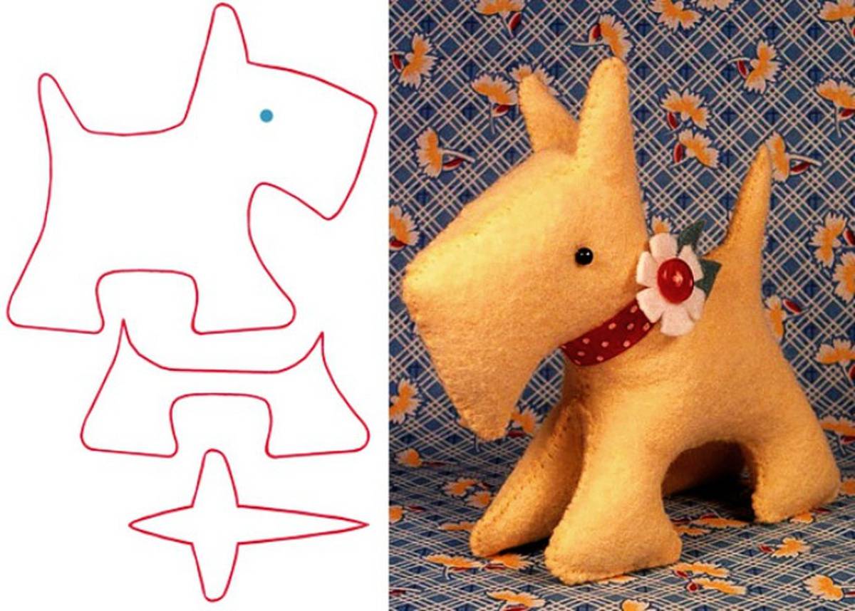 Собачка из фетра, выкройка которой отличается простой схемой, может стать отличным подарком, брелоком, елочной игрушкой или любимцем для игр с ребенком. Сначала нужно подготовить необходимые материалы: