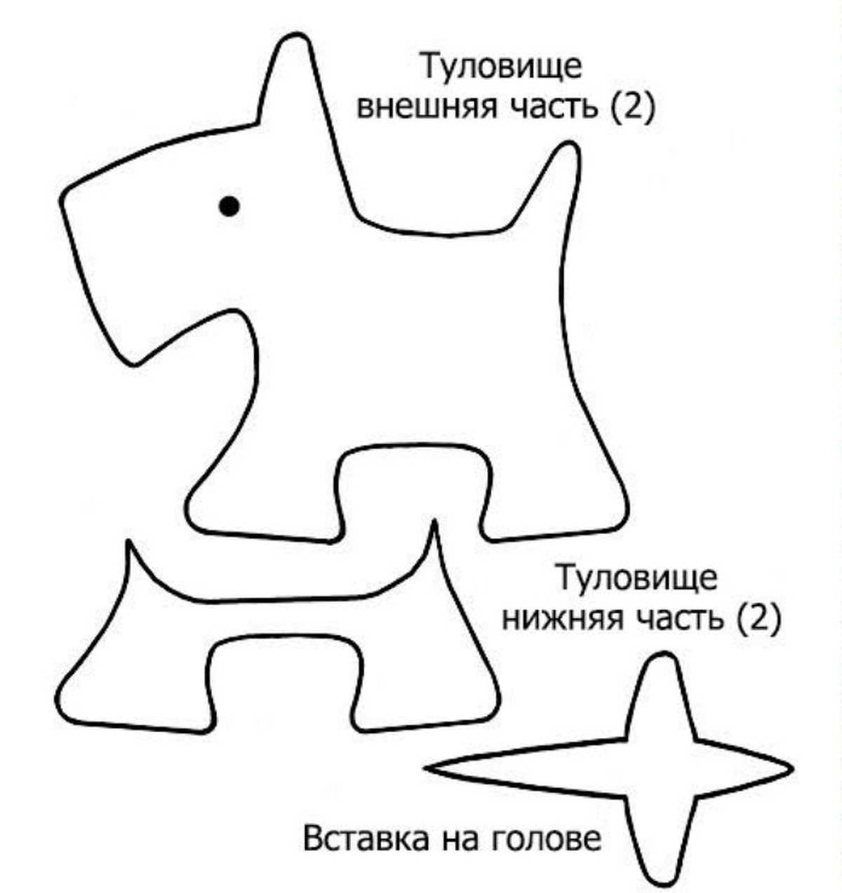 Первое, что необходимо сделать при изготовлении собаки из фетра своими руками – распечатать на листе схему-шаблон. За основу используйте выкройку, на которой хорошо видны все компоненты создаваемой фигурки.