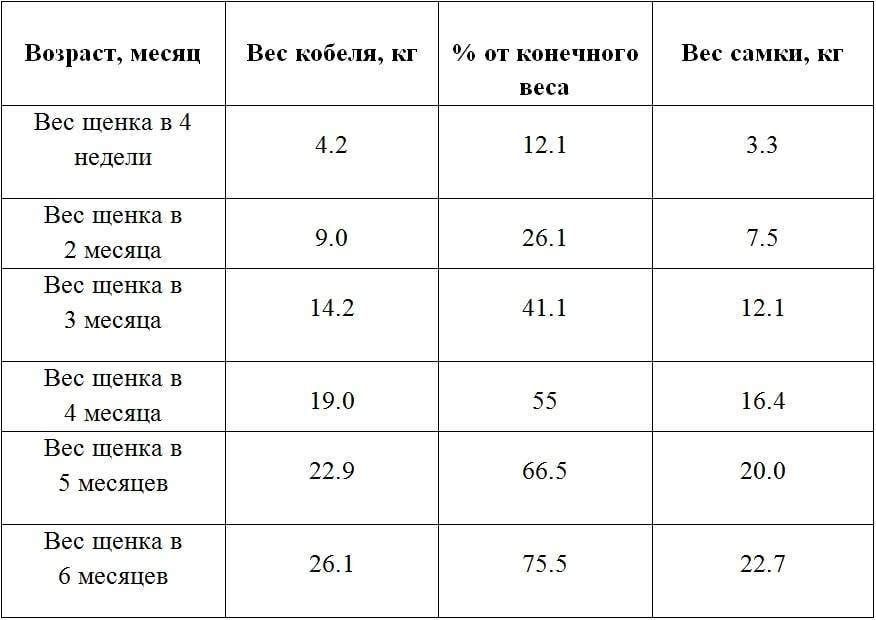 При выборе представителя немецкой породы, следует сравнить весовые параметры животного с таблицей.
