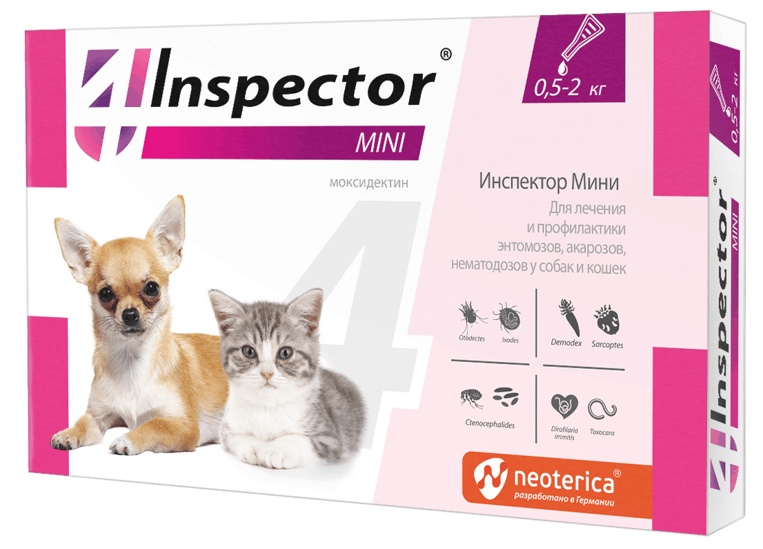 Капли подходят для лечения гельминтоза, ушного клеща, глистных паразитов у кошек и собак. Препарат на основе фипронила и моксидектина защищает от клещей на протяжении месяца, от блох – в течение 6 недель.