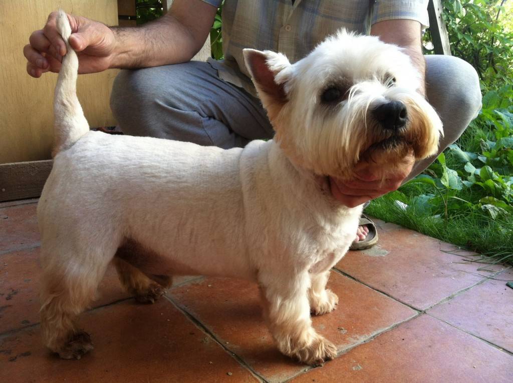 Веселый вест хайленд вайт терьер, описание породы характер которого свидетельствует о многочисленных положительных качествах пса, нуждается в профессиональной стрижке и тримминге в специальных салонах. В особенности активно будет расти шерстка на морде питомцы, по этой причине ее стричь следует хотя бы 1 раз в 4 месяца. Стрижка тела должна проводиться 1 раз в 5 месяцев. В данном случае осуществляется равномерное укорачивание шерстке на всем теле.
