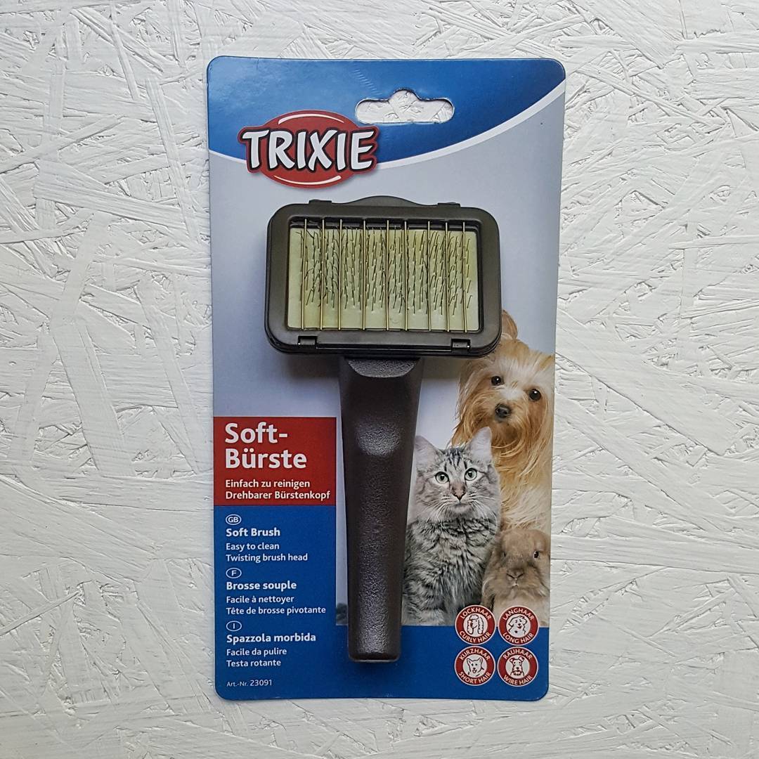 Сколько бы мы с вами не говорили о разных спреях и моющих средствах, основным инструментом для ухода за шерстью собаки является щетка. Они бывают самые разные – густые, редкие, мягкие и металлические. Не все знают, что щетка – это инструмент не только для ухода за шерстью собаки, но и средство для ухода за кожей собаки. Не удивляйтесь, расчесывая своего питомца щеткой, вы не только удаляете отмершие волоски шерсти, удаляете грязь с шерсти собаки, но еще и делаете собаке массаж.