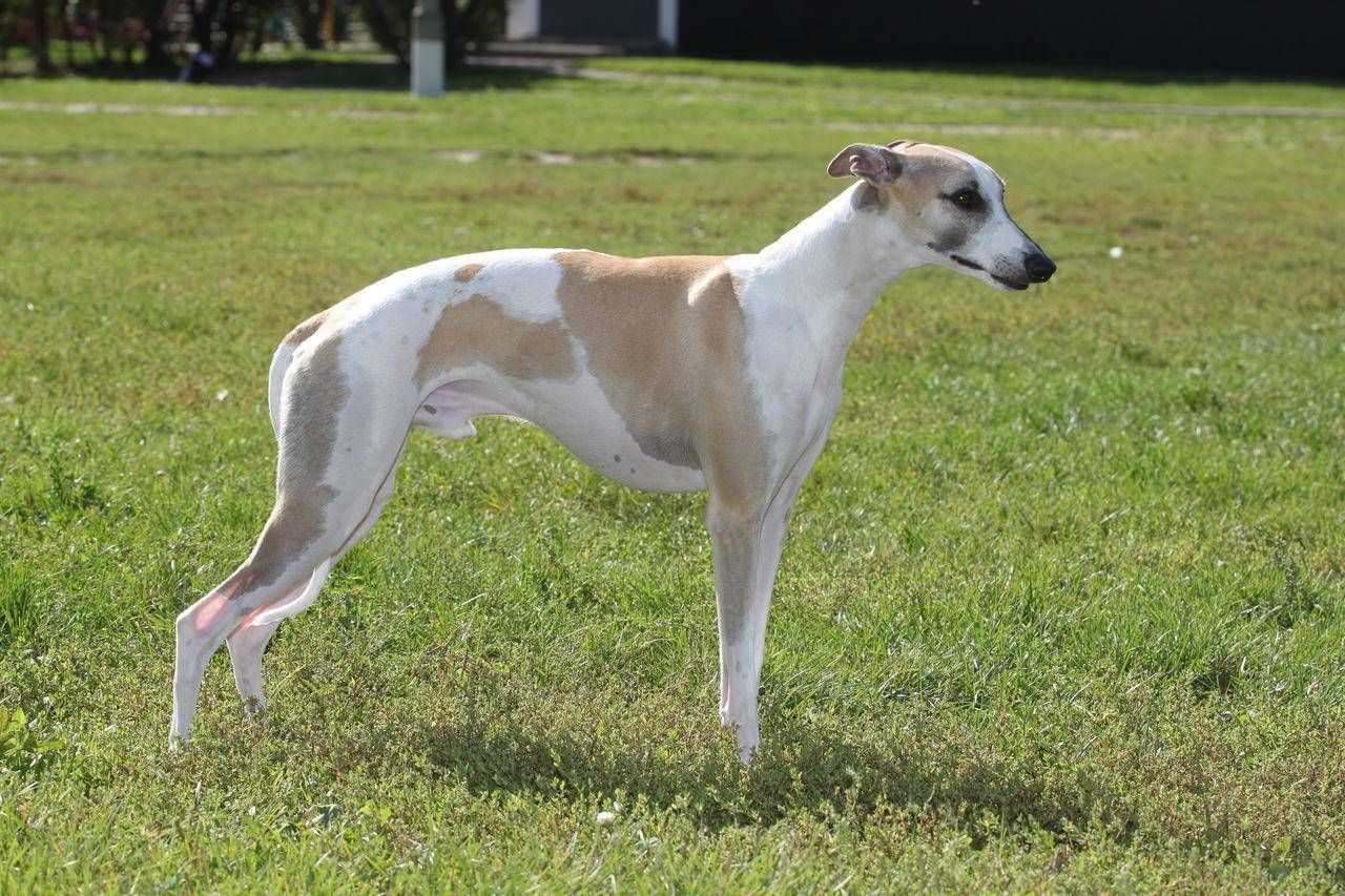 Описание породы уиппетов схоже с грейхаундами, поэтому иногда их называют «уменьшенными грейхами». Однако характеристика строения некоторых частей тела имеет кардинальные отличия. Особенность уиппетов – грациозность, вызывающая восхищение у такой крупной собаки. Их тело изогнуто красивой дугой, стойка настолько отличная, что кажется животные рождены для участия в выставках.