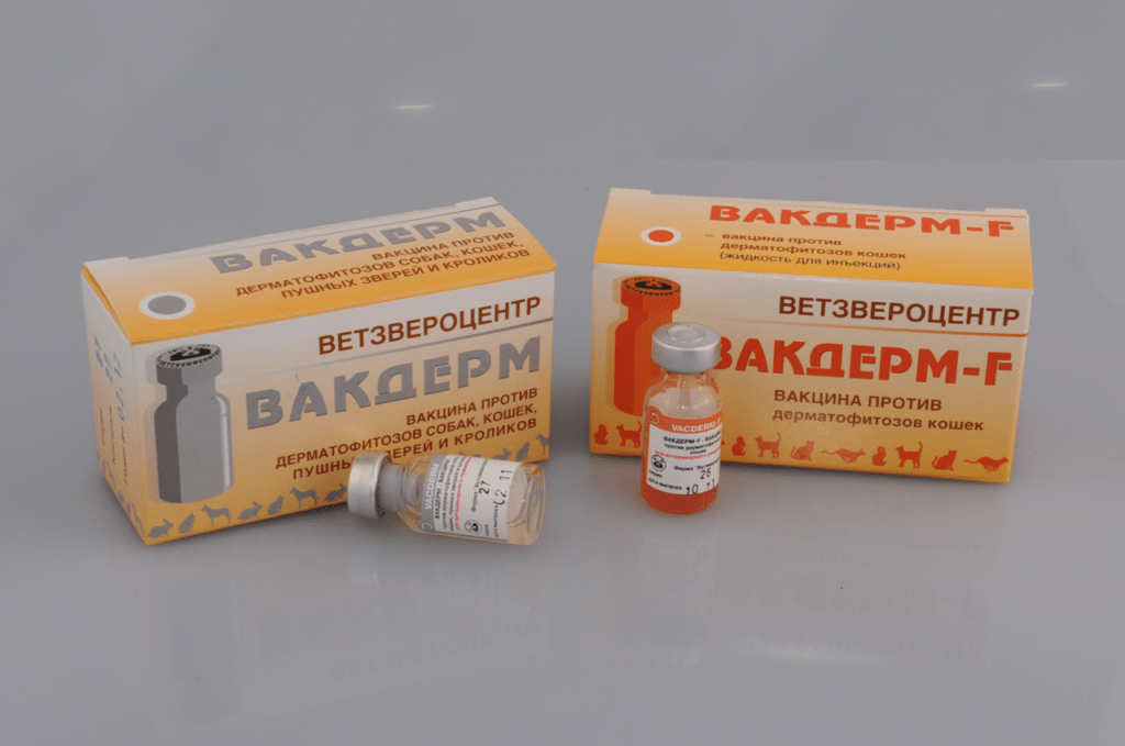 Вакдерм (международное название такое же) – вакцина, которую ЗАО разработала для мелких грызунов, собак и кошек на основе клеток дерматофитов (грибков) Trichophyton mentagrophytes, Microsporum canis, Microsporum gypseum.