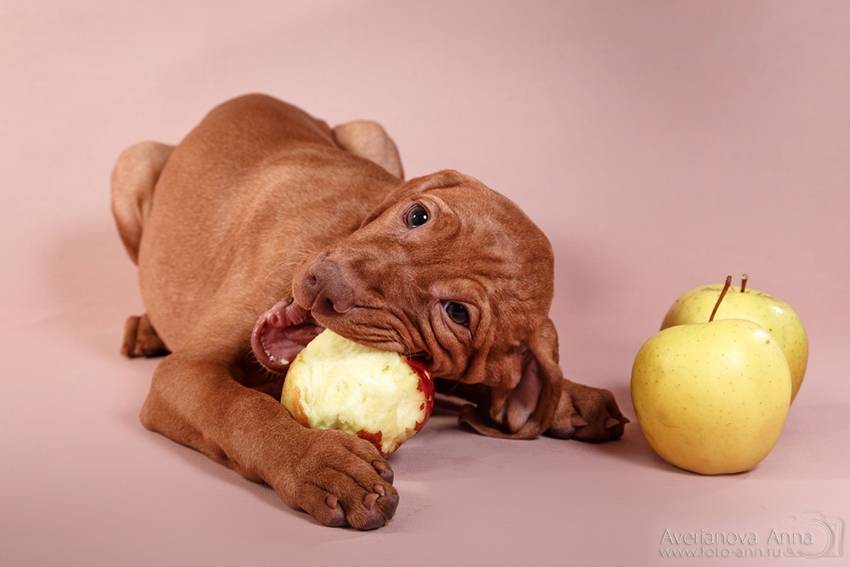 Венгерская выжла ест немного, переборчива и очень требовательна к качеству корма. Если это натуральное питание, то собака может повыбирать кусочки мяса, а к каше и не притронуться. На вкусняшки с хозяйского стола смотрит такими глазами, будто ее неделю не кормили. Готовые карма также стоит подбирать с учетом вкусовых предпочтений собаки. Менять рацион питания, который удовлетворяет потребности собаки не нужно без необходимости.
