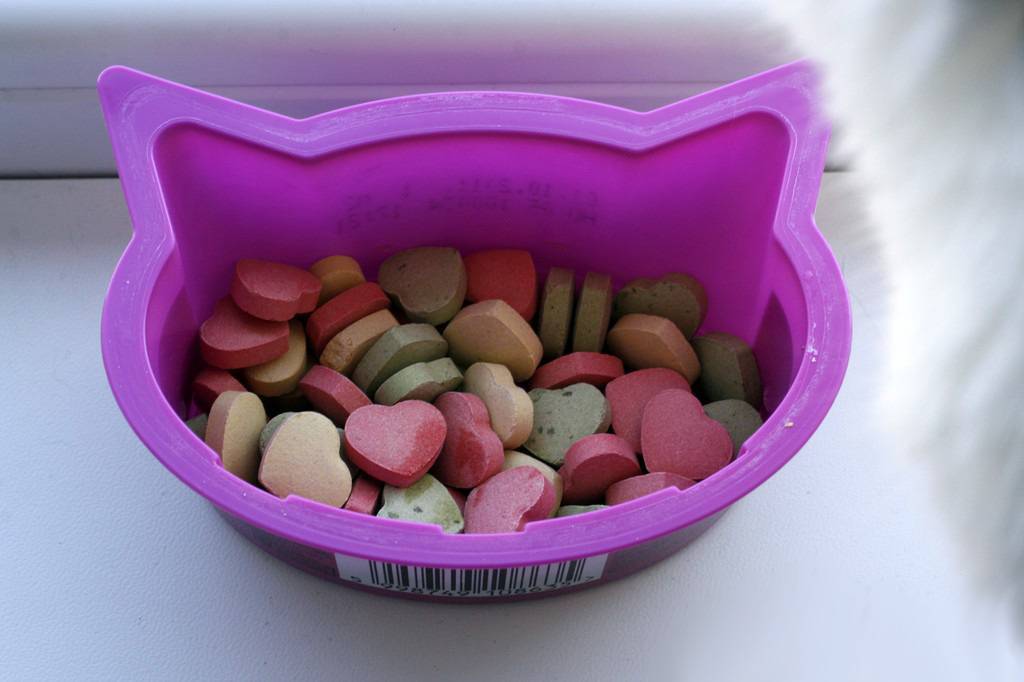 Комплексы в таблетках часто выпускают в виде крекеров, напоминающих гранулы промышленного корма, чтобы привлечь внимание кошек. А для уменьшения проблем с употреблением витаминов, производители делают таблетки с мясным, рыбным, сырным или молочным вкусом и ароматом