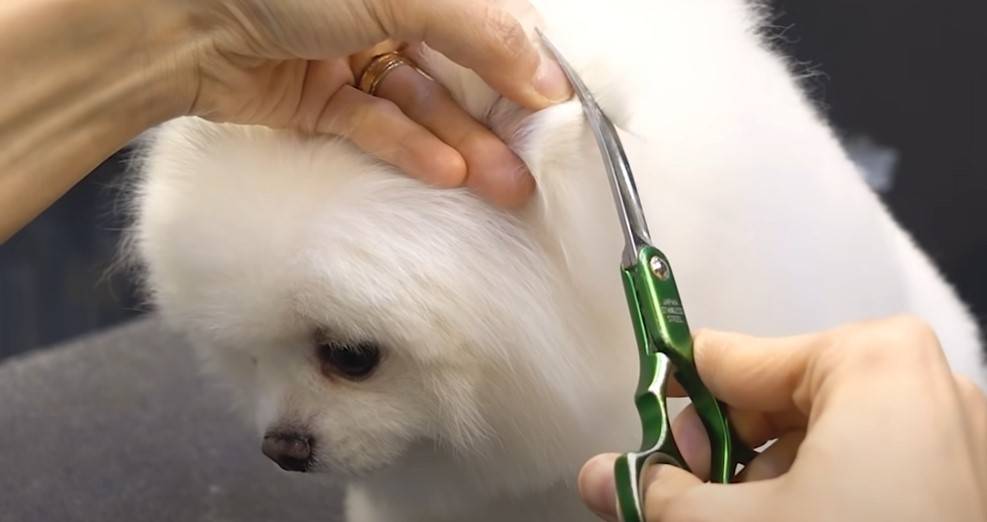 Начинать лучше с головы, ножницами постричь шерсть на ушках, уделив особое внимание длинным волоскам в ушных раковинах, которые нужно аккуратно удалить