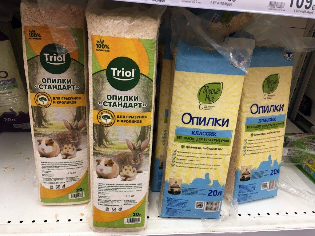 Опилки справа (Зверье Мое) якобы полностью безопасны. Но они из хвойных пород деревьев! Опилки слева (Triol) — лиственные.