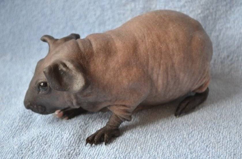 Во второй половине прошлого века канадские ученые задались целью вывести такой вид грызунов, который хорошо подошел бы для дерматологических исследований. Так и появилась экзотическая лысая морская свинка, похожая на бегемота маленьких размеров. Отцом первых голых детенышей был обычный шерстяной самец, потому это явление списали на генетическую мутацию и оставили без внимания.