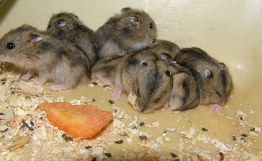 Важно! Если вы нашли новую кормилицу для вашего потомства — не спешите сразу подкладывать к ней малышей. Прежде всего оботрите их подстилкой из гнезда самки, её саму выманите наружу и аккуратно положите хомячков к другим