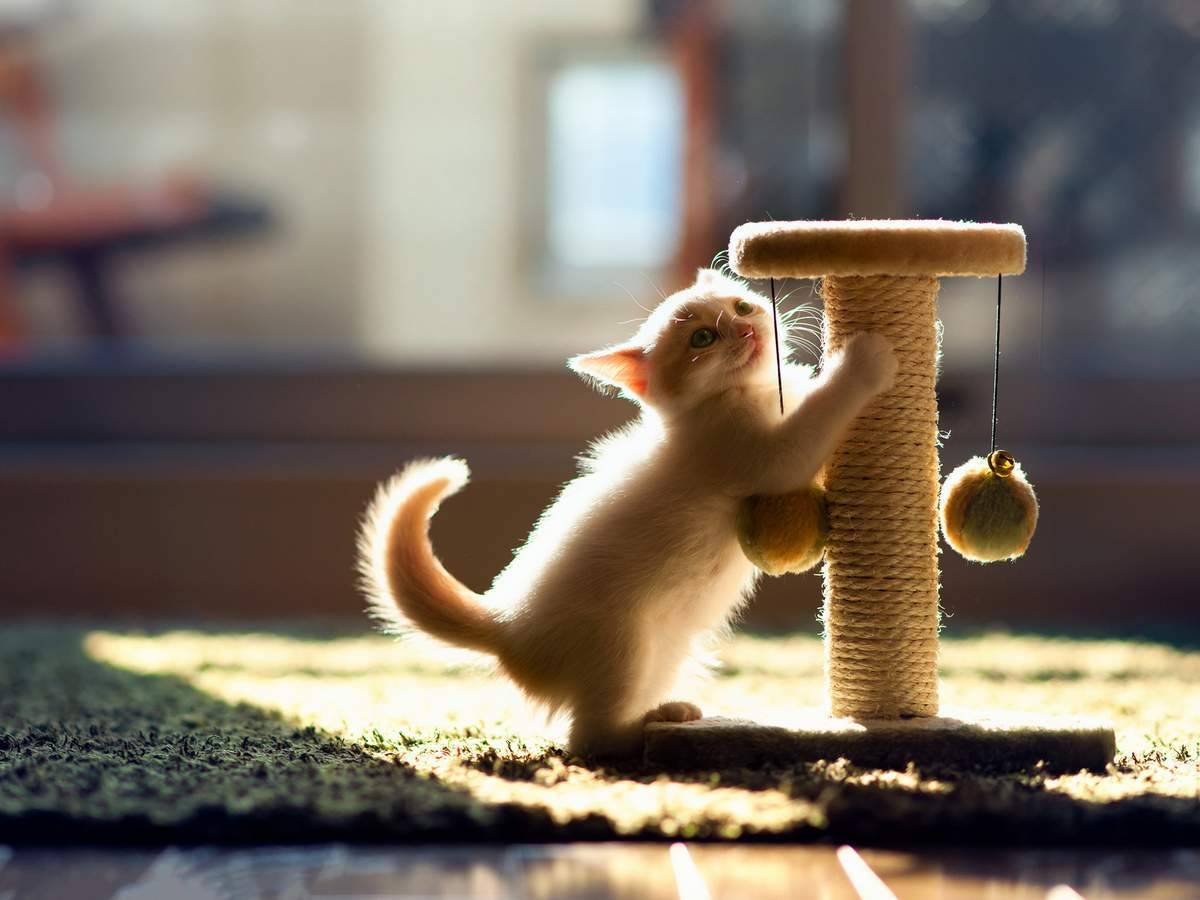 С раннего возраста котенка следует приучить к когтеточке, и тогда, он не